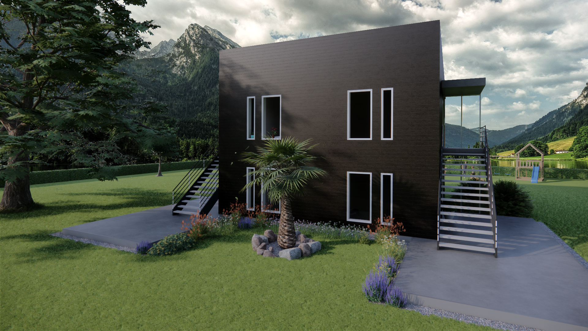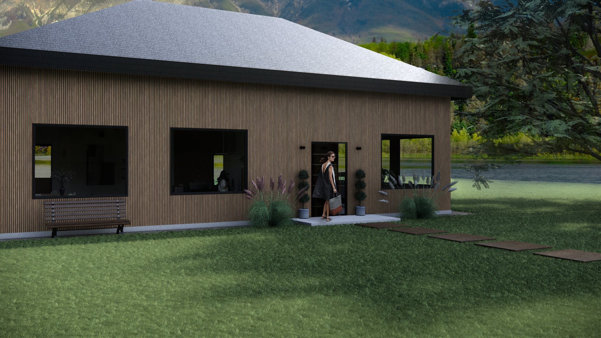 House modeled and visualized in Revit & Enscape. Post-production in Photoshop